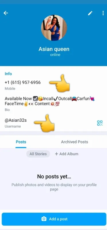 My Telegram Id - @asian32s My What'sApp number: 615 957 6 956 Horny Young Sexy asian girl This is my real add. I'm independent. Sexy Girl. House or any where you like. I'm always ready for fun and sex. With a young or older man .I need sex and fucking. I need sex everyday.You can get from me everything that u need. I'm available day/night. Incall / Outcall /Car/Hotel fun. If you interested,text me or call me Best Blowjob Included anal Penis Massage & suck Shower sex Bbbj Greek Nuru massage ✔Kissing Gfe and 69